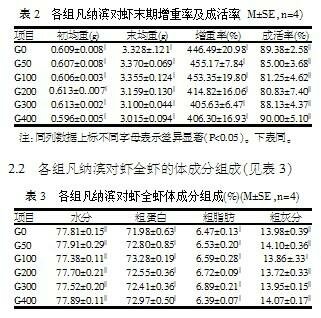2.1 各组凡纳滨对虾的增重率、成活率(见表2)